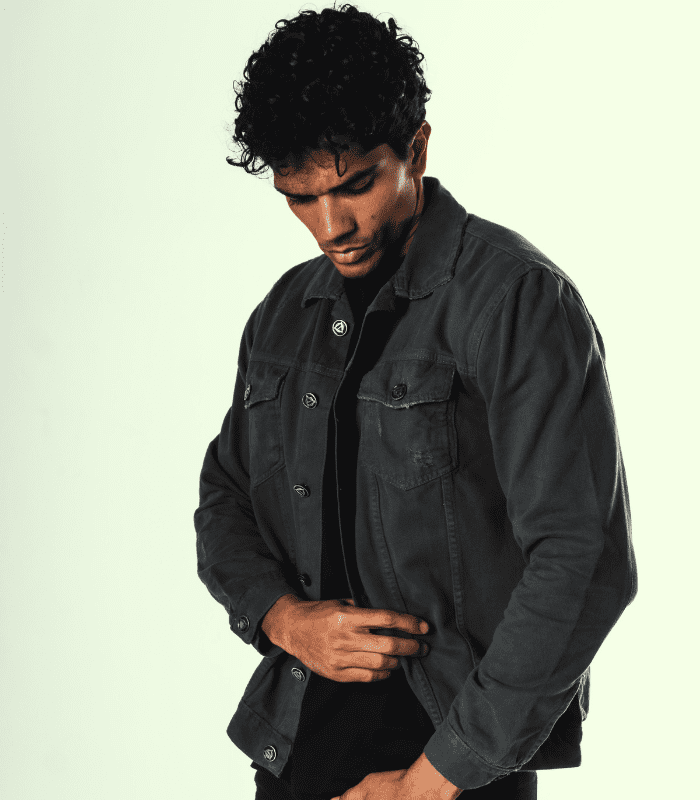 Os bolsos frontais com leve desgaste, os botões metálicos personalizados e o acabamento reforçado criam uma estética atual, urbana, limpa e versátil.